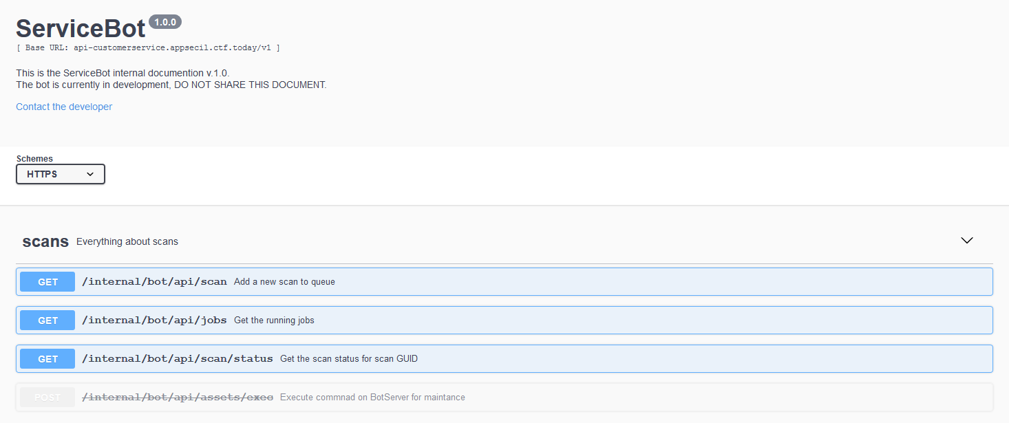 api-method: https://api-customerservice.appsecil.ctf.today/v1/internal/bot/api/scan?url=https://endl71tvunb2q.x.pipedream.net/verify.txt