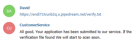 root@kali:/media/sf_CTFs/appsec/Customer_Service# curl https://api-customerservice.appsecil.ctf.today/v1/internal/bot/api/scan?url=https://endl71tvunb2q.x.pipedream.net/verify.txt