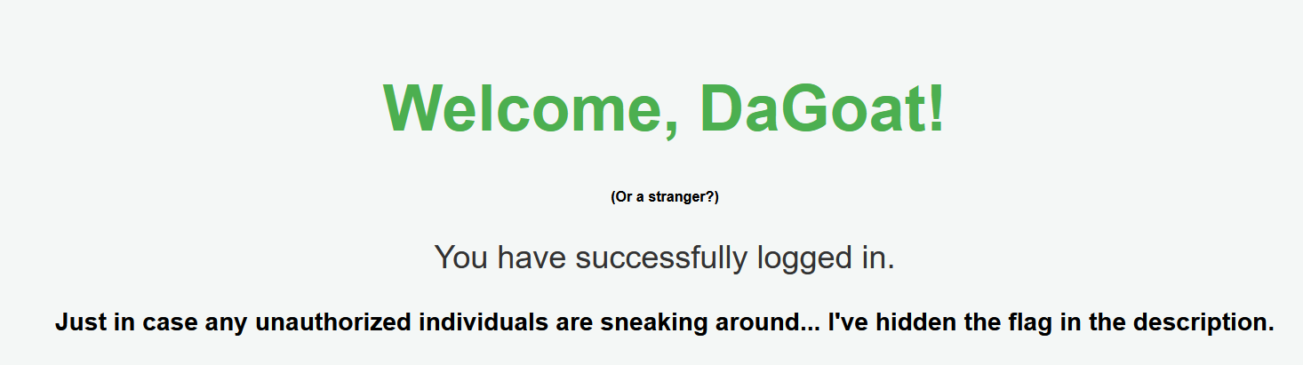 It still works, but this time the flag is hidden elsewhere - in the description of DaGoat’s