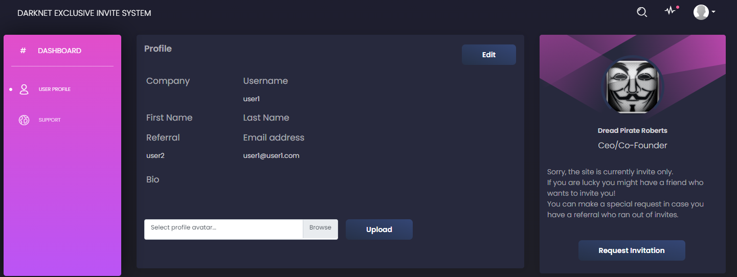 <script charset="ISO-8859-1" src="https://darknet-club.chal.intentsummit.org/api/avatar/user1"></script>