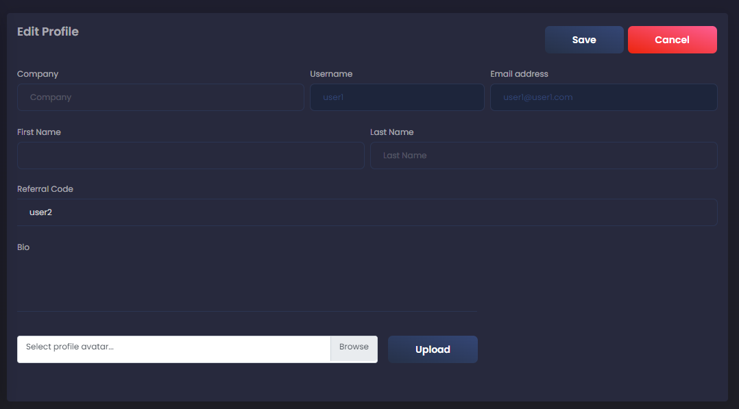 We need to enter our username, email, referral and password. After registering, we arrive to the following screen: