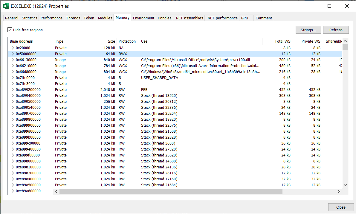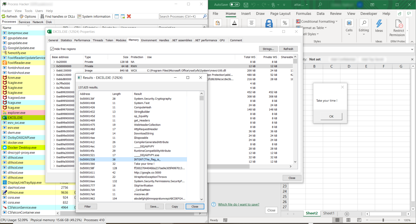 We can see that we should expect some code to be executed. So, we open the spreadsheet in a sandboxed environment and inspect it using Process Hacker: